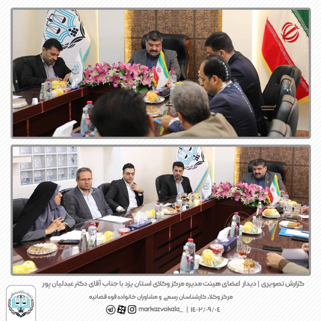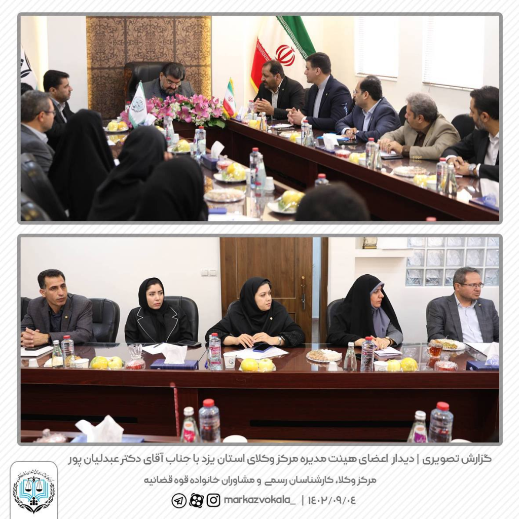 دیدار رئیس مرکز جناب آقای دکتر عبدلیان پور با اعضای هیئت مدیره مرکز وکلای استان یزد دیدار صمیمانه رئیس مرکز جناب آقای دکتر عبدلیان پور با اعضای هیئت مدیره مرکز وکلای استان یزد در ۱۴۰۲/۰۹/۰۴ برگزار شد.