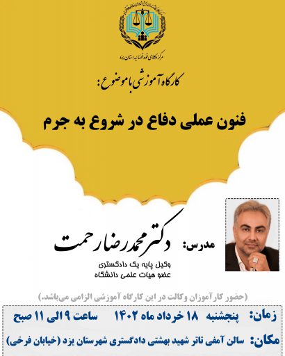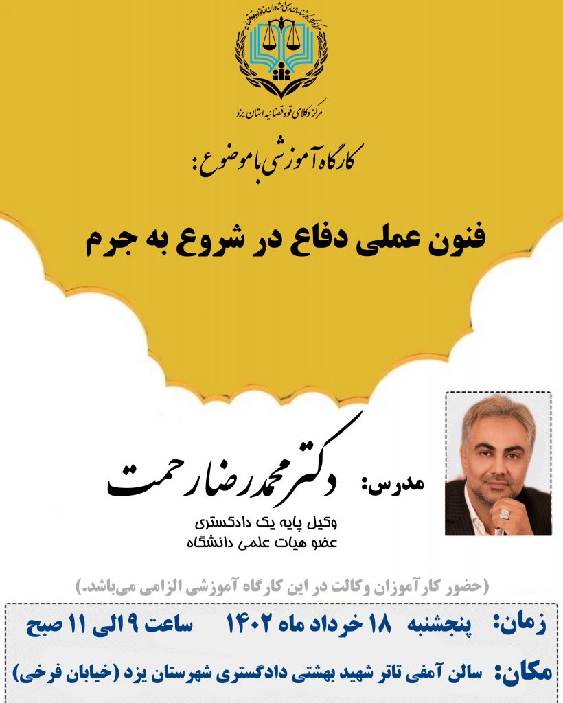 کارگاه فنون عملی دفاع در شروع به جرم به تدریس دکتر محمدرضا رحمت